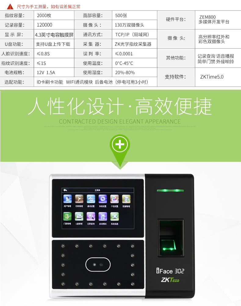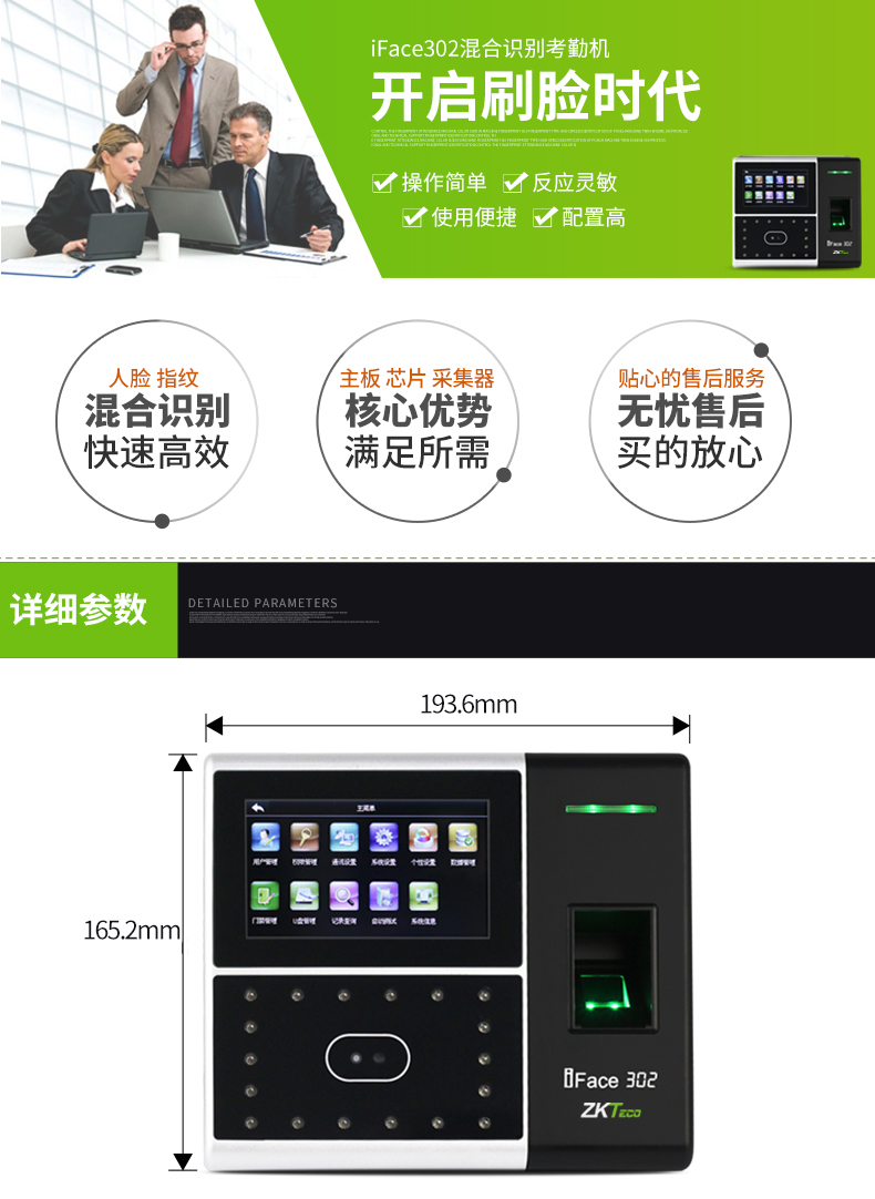 • iface302人臉混合識別考勤機